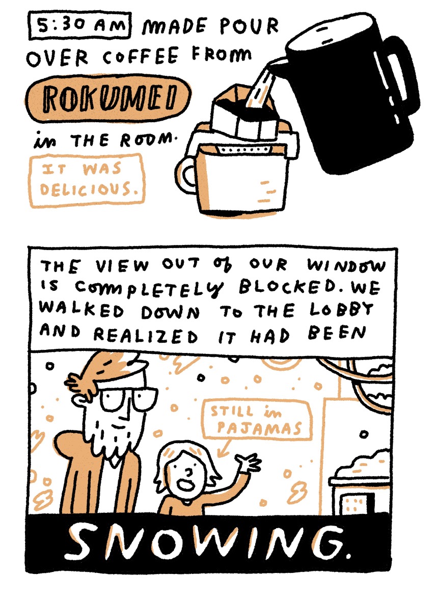 Also, I approached it slightly differently this year. Since we were moving around a lot, I made a lot of drawings and notes in my sketchbook, and then (and this is the part that sort of breaks the "rules" a little) I drew it over the next few days. So, I guess it's not really technically an "Hourly Comic Day" comic. Oh, well!
